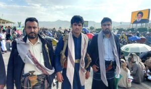 وأعلنت الحشود التي رفعت العلمين اليمني والفلسطيني وصور شهيد الأمة والإنسانية السيد حسن نصر الله وشهيد المقاومة السيد هاشم صفي الدين، مواصلة الاستنفار والثبات وتعزيز الجاهزية لمواجهة العدو الصهيوني الإرهابي، والرد على جرائمه في اليمن وفلسطين.