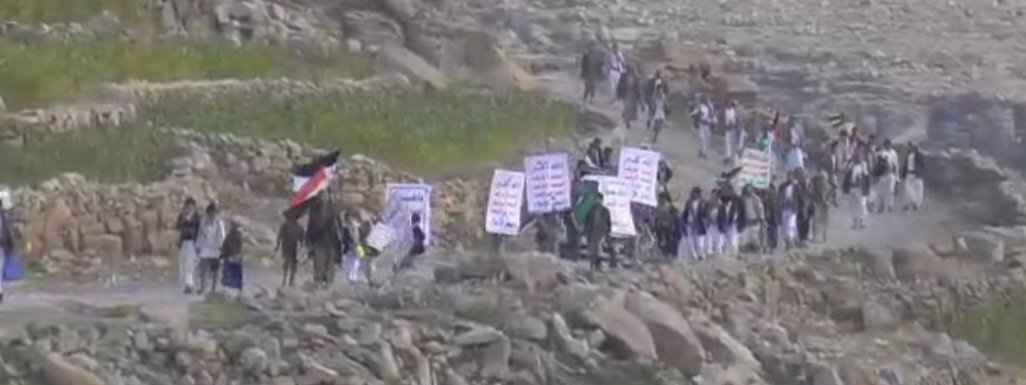 أبناء الأشمور بعمران ينظمون مسيرة جماهيرية حاشدة دعماً لغزة ويؤكدون جاهزيتهم العسكرية لمواجهة أي تهديد