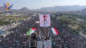 وأوضح بيان صادر عن المسيرة المليونية ألقاه عضو المكتب السياسي لأنصار الله – عضو اللجنة الوطنية العليا لنصرة الأقصى ضيف الله الشامي، أنه وتتوجياً للخروج الذي وفقنا الله له وكان بفضله سبحانه وتعالى، الخروج الذي لا مثيل له في الدنيا بكلها، وتعظيماً ووفاء للشهداء الذين هم وقود مسيرتنا وشواهد صدق توجهنا واستجابة لله وحباً له ورغبة فيما عنده، وخوفاً من عذابه، وثباتاً على كتابه ونهجه، وتحت راية من اصطفاهم من عباده، نزف كشعب يمني – اختار الجهاد في سبيل الله طريقاً له – بكل افتخار واعتزاز إلى الأمة العربية والإسلامية وكل أحرار العالم قائداً جهادياً عظيماً، وفارساً من فرسان الإسلام، القائد الجهادي الكبير الفريق الركن محمد عبد الكريم الغماري رئيس هيئة الأركان العامة.