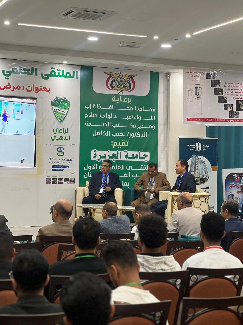 تحت رعاية محافظ محافظة إب اللواء/ عبدالواحد صلاح، ورئيس مجلس أمناء جامعةالجزيرة الدكتور/ عبدالرقيب صبيح، ومدير مكتب الصحة والبيئة الدكتور نجيب الكامل، انطلقت في محافظة إب، صباح اليوم الخميس فعاليات “الملتقى العلمي الأول لطب الفم والأسنان” الذي نظمه قسم طب وجراحة الفم والأسنان في جامعة الجزيرة تحت شعار: “مرض السكر وصحة الفم والأسنان”. وشهد الملتقى حضورًا رسميًا وأكاديميا وطبياً، تقدمه العميد/ أمين علي الورافي أمين عام المحافظة، والدكتور/ أشرف المتوكل وكيل المحافظة لشؤون الصحية، والدكتور/ نجيب الكامل مدير مكتب الصحة والبيئة، والأستاذ الدكتور/ نشوان المجمر رئيس الجامعة، والدكتور/ حسان شريان رئيس الجامعة الوطنية.