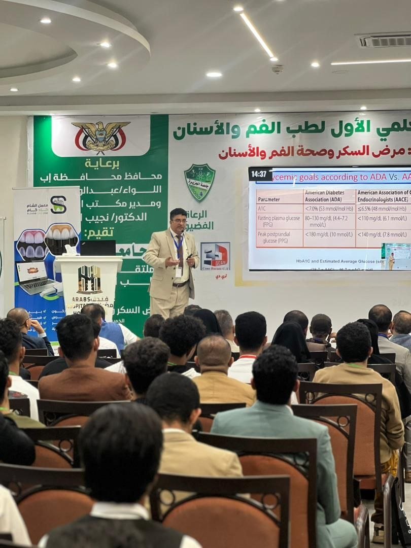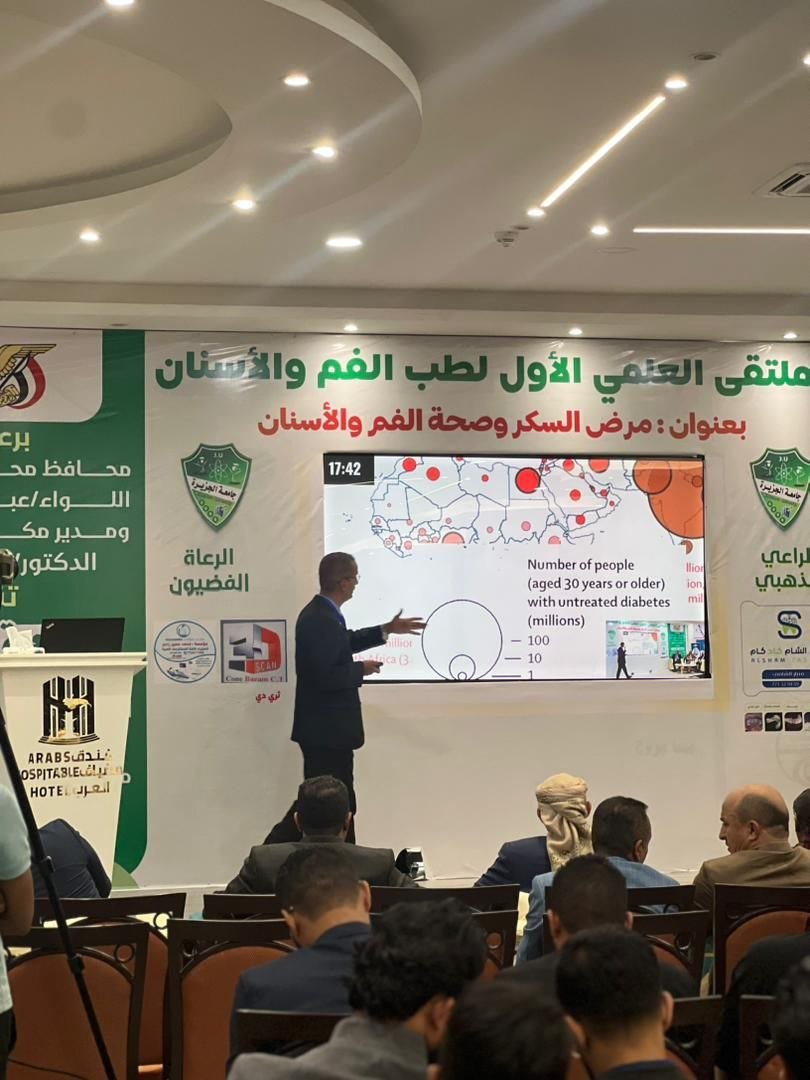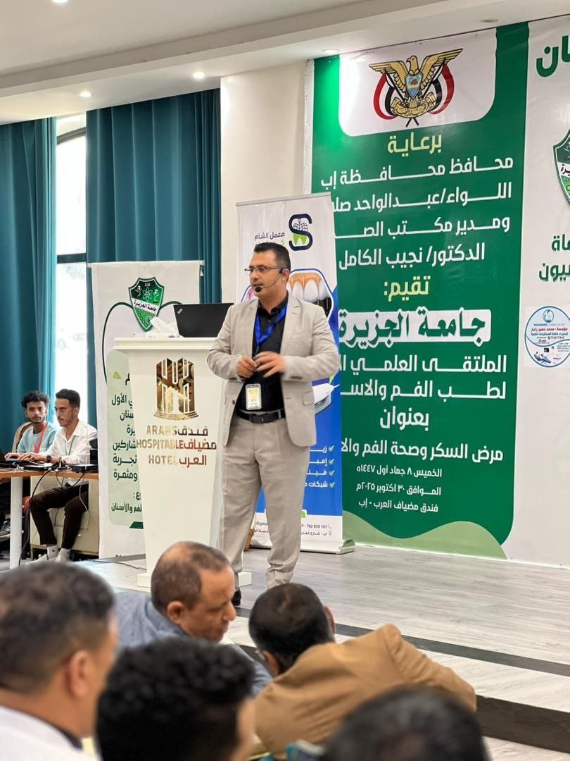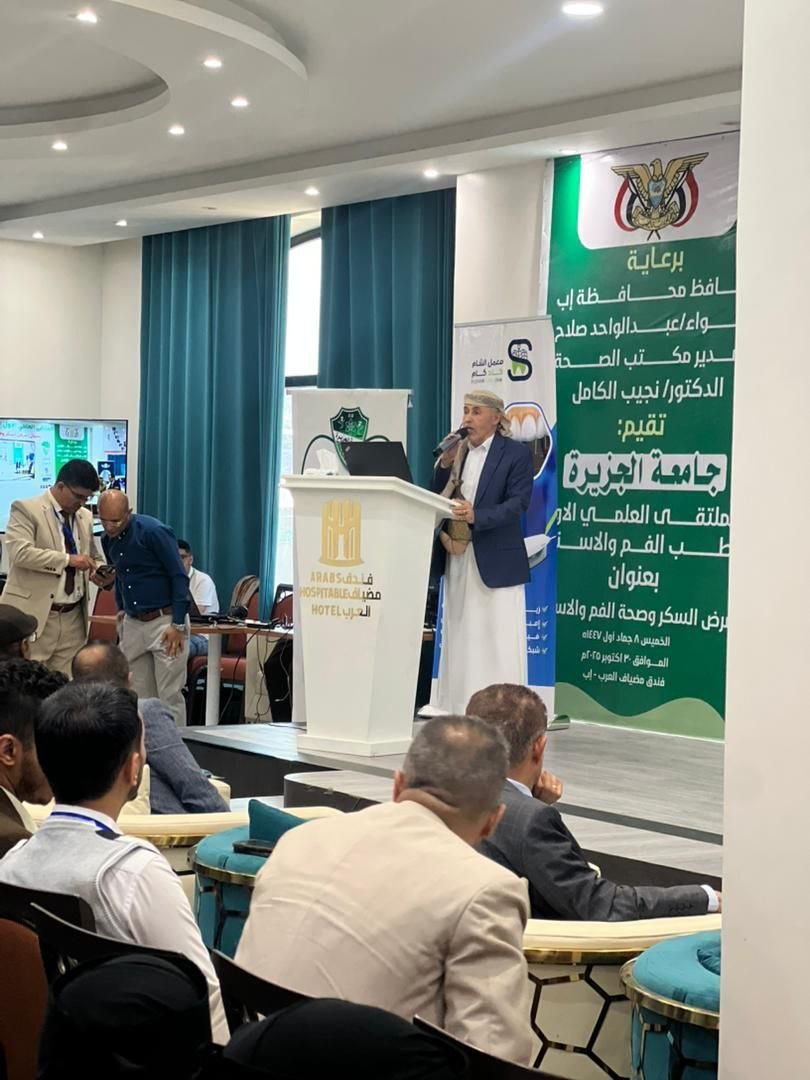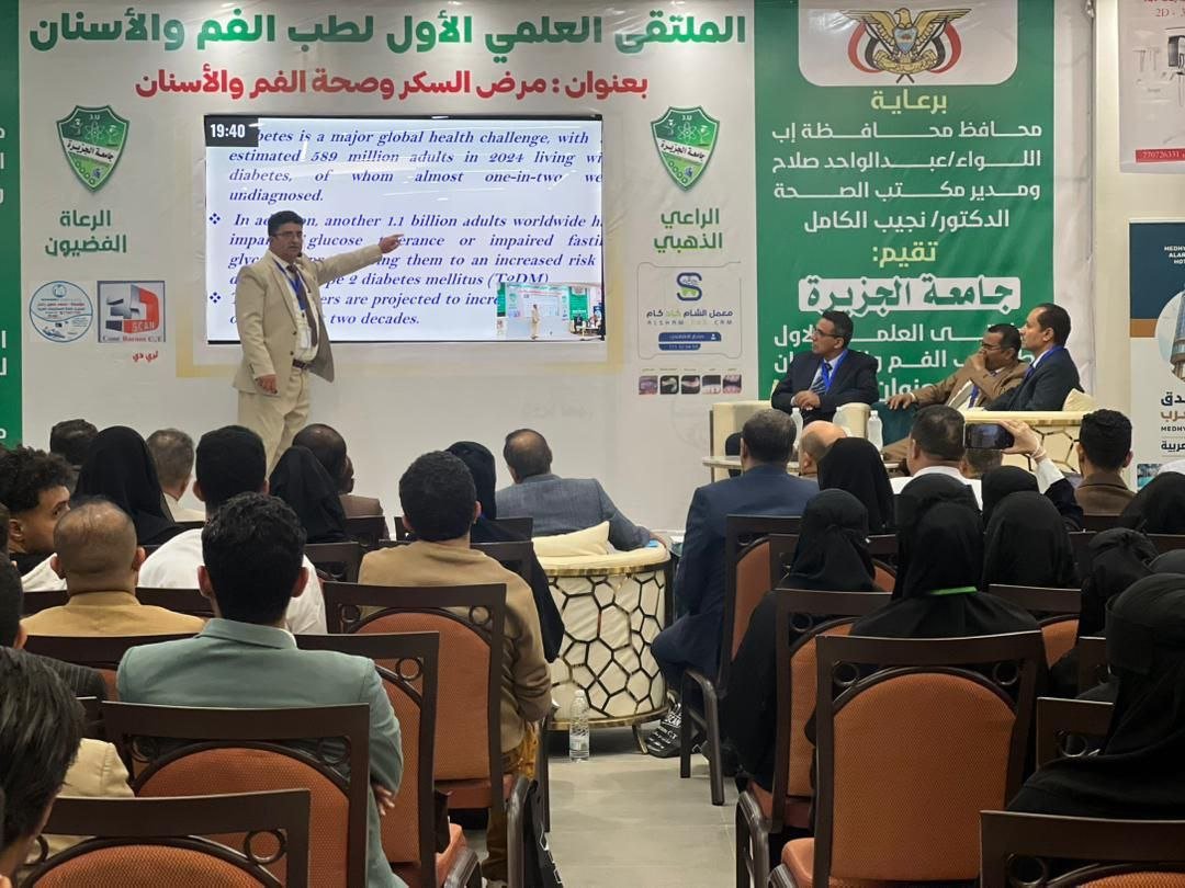 كما سلط أ. م. د/ عبدالكريم الشعري رئيس قسم طب وجراحة الفم والأسنان بجامعة الجزيرة، الضوء في محاضرته على “مرض السكر كعامل خطر رئيسي لالتهاب دواعم السن (اللثة): خطر لا يمكن إغفاله”. وشارك أ. د/ عبدالله المطري – رئيس جامعة جبلة- بمحاضرة عن “تأثير مرض السكر على التئام الجروح الفموية”. فيما بحث أ. م. د/ فيصل أبو لحوم “السكر والعدوى الفموية: التحديات وفرص العلاج”. وتناول أ.د/ محمد حلقوم “تأثير السكر على مدى وشدة العدوى الفكية الوجهية.