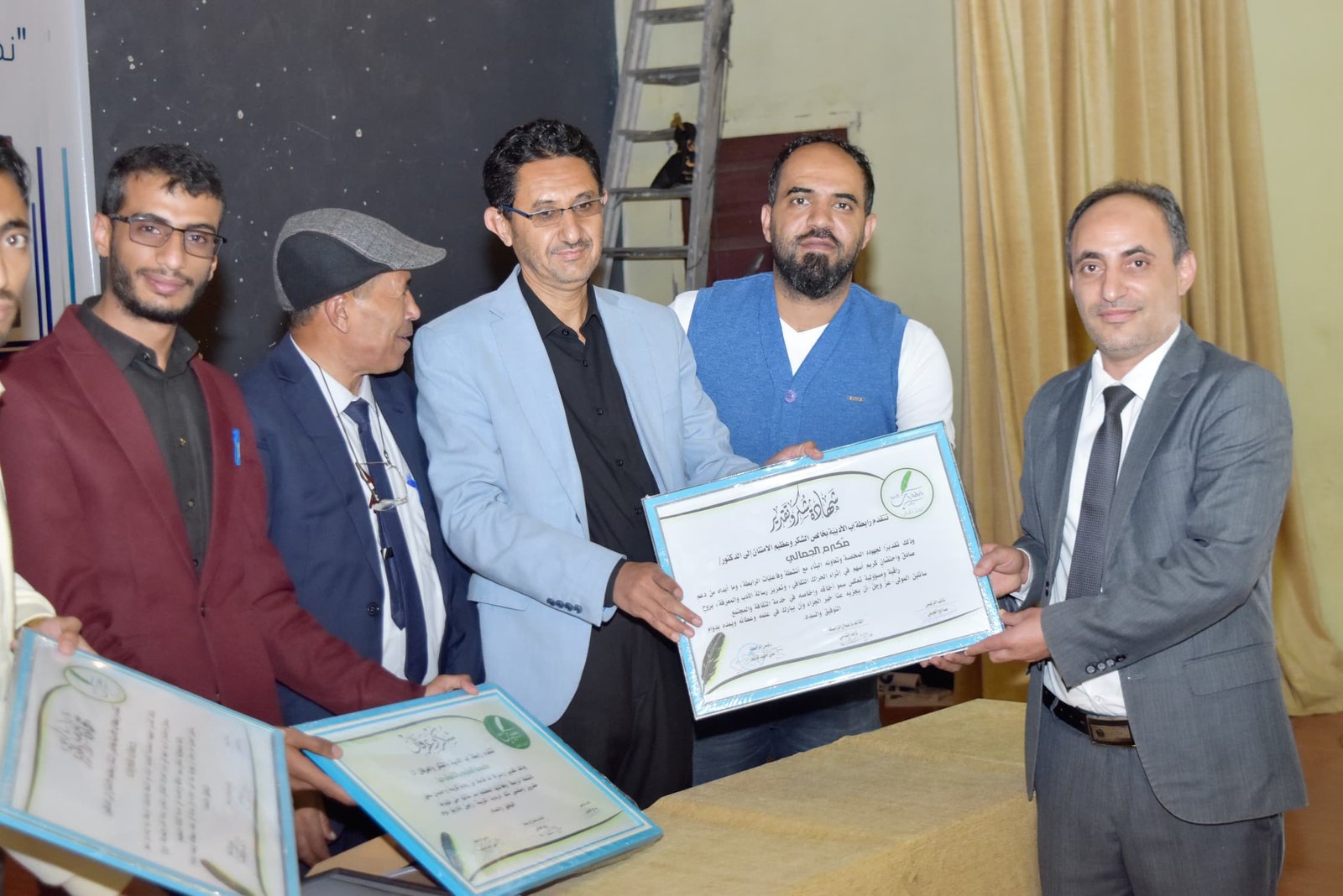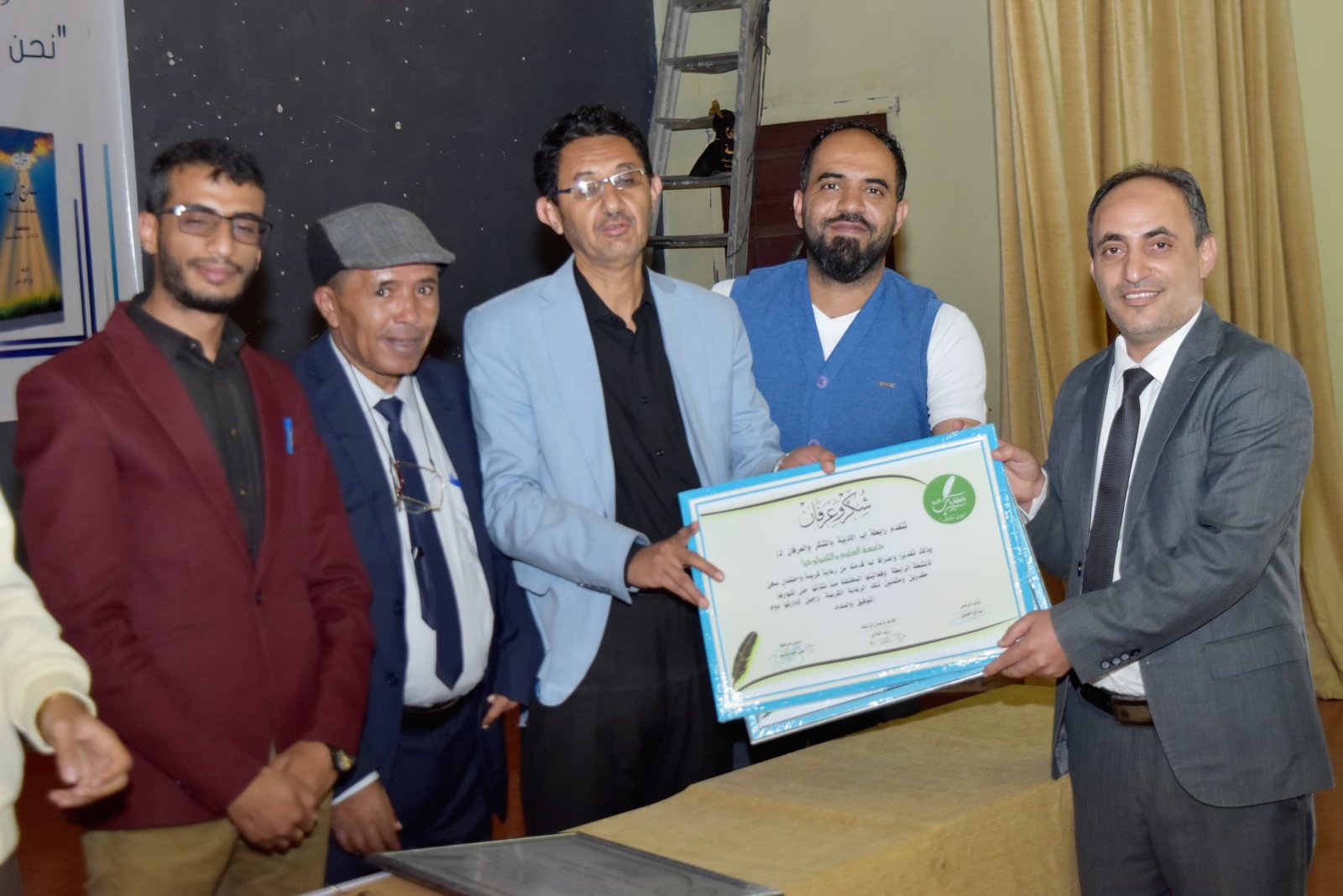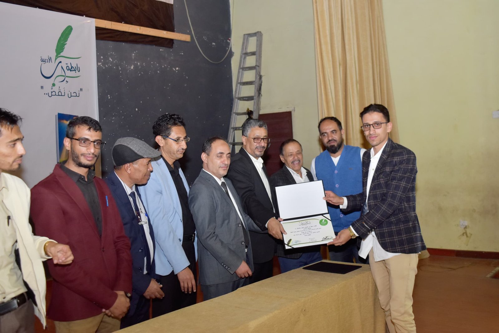 وفي ختام الفعالية، قام مدير مكتب الثقافة عبدالحكيم مقبل ، ومدير الرابطة أحمد علي قاسم، ورئيس الجامعة الوطنية الدكتور حسان شريان وجامعة العلوم والتكنولوجياالدكتور مكرم الجمالي، والدكتور علي بركات نائب عميد كلية الآداب – جامعة إب، والدكتور صالح الجبلي نائب رئيس الرابطة، والأستاذ عبدالحميد الكمالي بتكريم الفائزين والمشاركين في المسابقة القصصية، إضافة إلى تكريم الداعمين الذين أسهموا في إنجاح هذه المبادرة الأدبية.